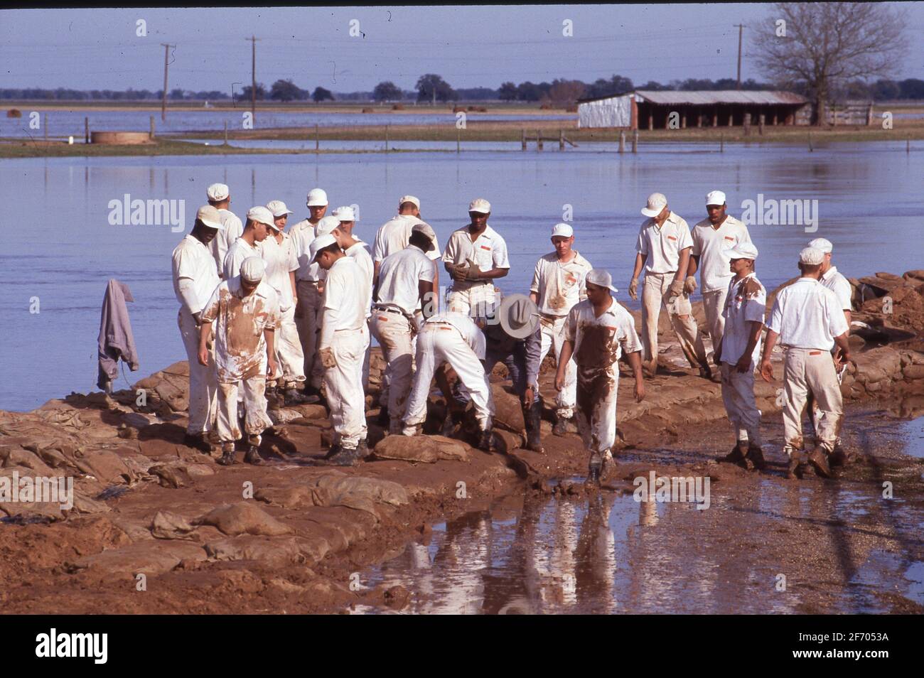 Fort Bend County Texas Usa Circa 1994 Inmates From The Ramsey Ii Unit Of The Texas Department Of Corrections Work To Contain Flooding Along The Brazos River Near Their Prison Southwest Of